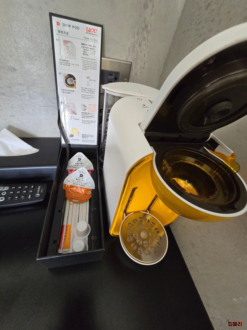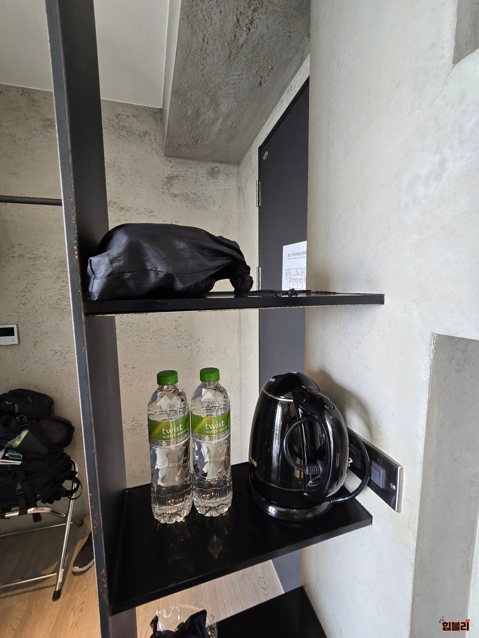 생수 2병과 과자, 캡슐커피가 제공된다.