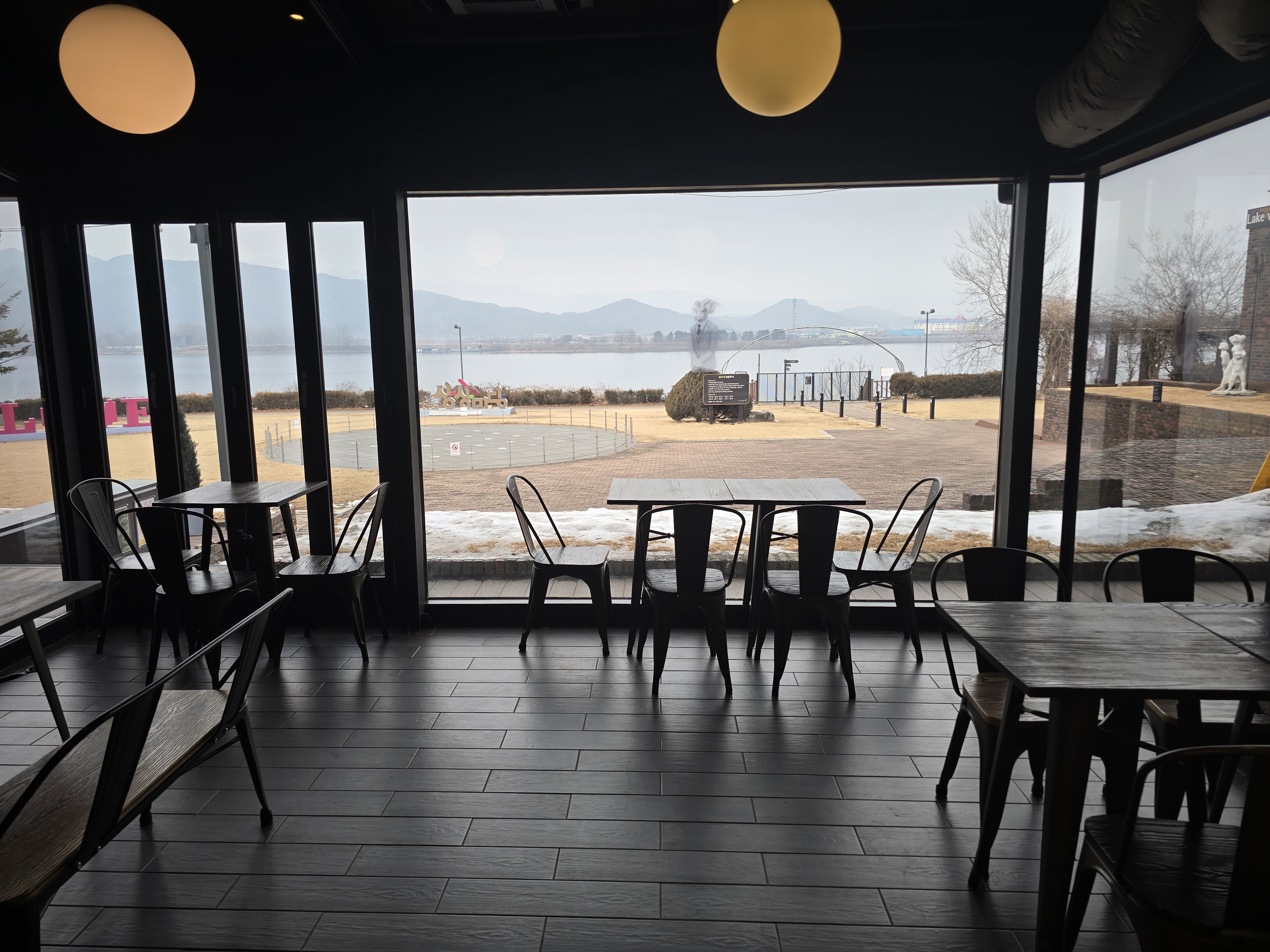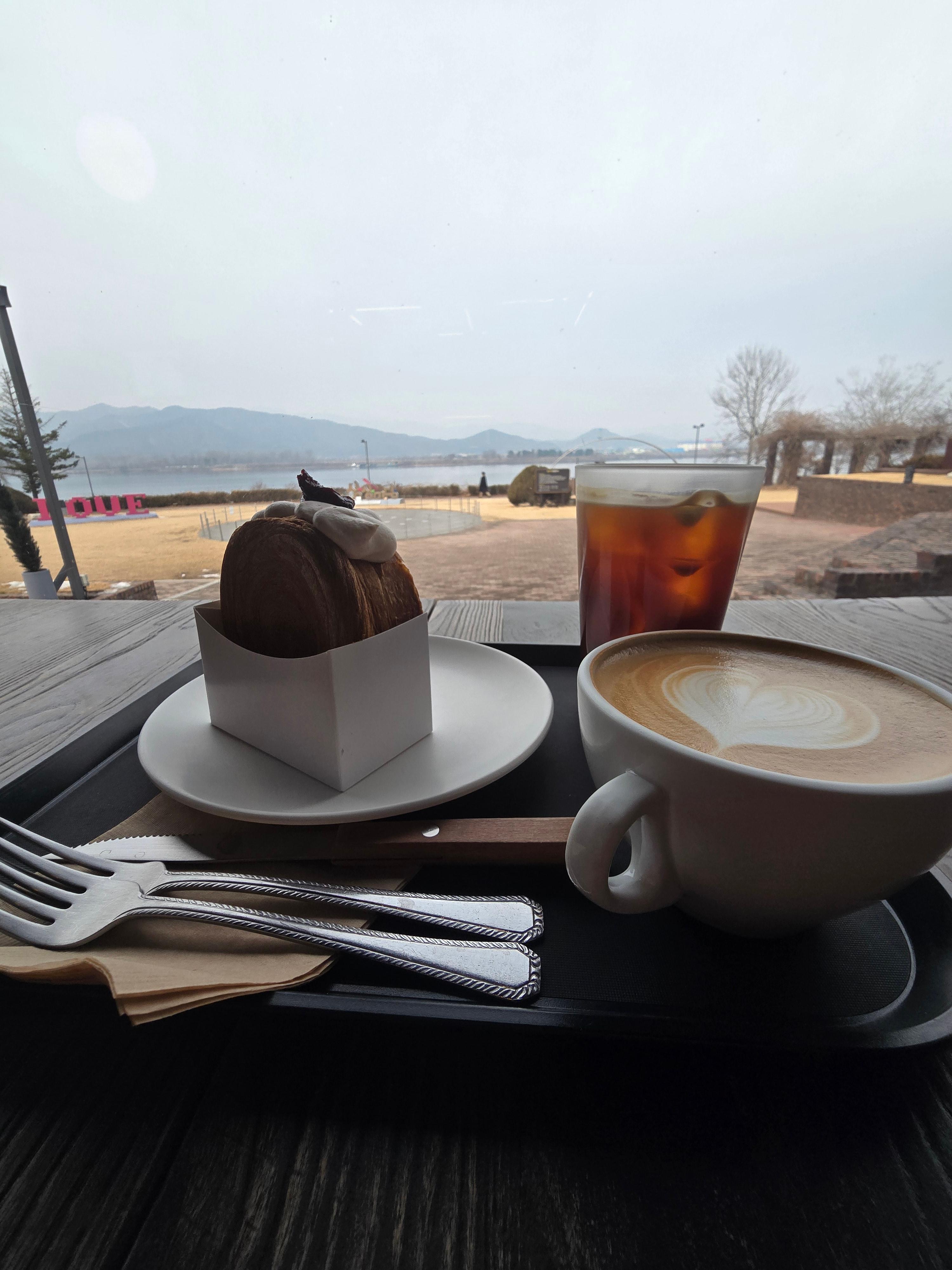 창가 자리에 앉으면 북한강의 멋진 뷰를 감상할 수 있어서, 커피 한 잔과 함께 여유로운 시간을 보낼 수 있다.