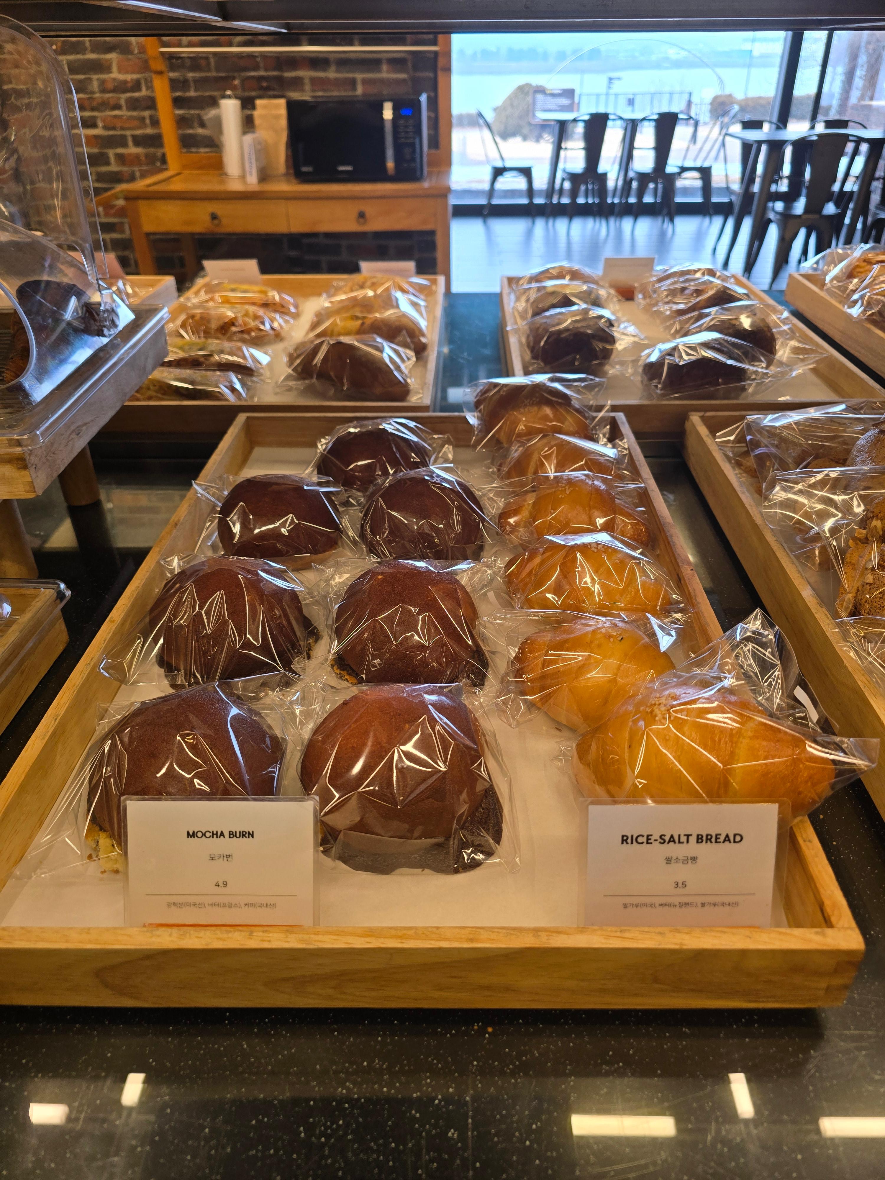 이 카페의 가장 큰 매력 중 하나는 다양한 빵 종류다. 베이커리 카페인 만큼 신선한 재료로 만든 빵들이 많아서 선택의 폭이 넓다. 특히, 휘낭시에와 같은 디저트는 정말 맛있었다. 빵이 나오는 시간이 정해져 있어서 그 시간에 맞춰 가면 더욱 신선한 빵을 맛볼 수 있다.